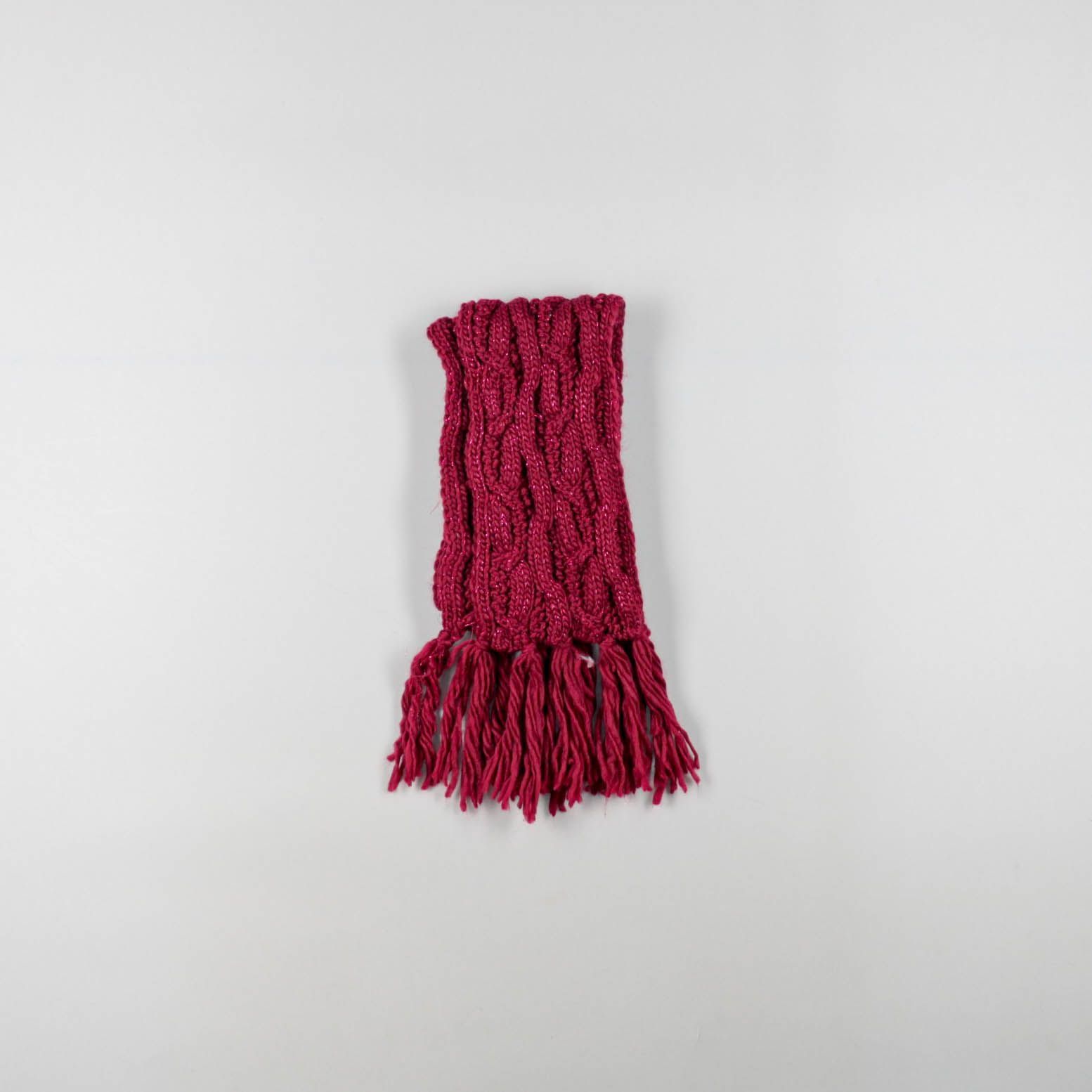 Вязаный шарф косами с кисточками, без указанного бренда. Подойдёт для зимних прогулок и повседневных образов, хорошо согревает шею за счёт плотной вязки.