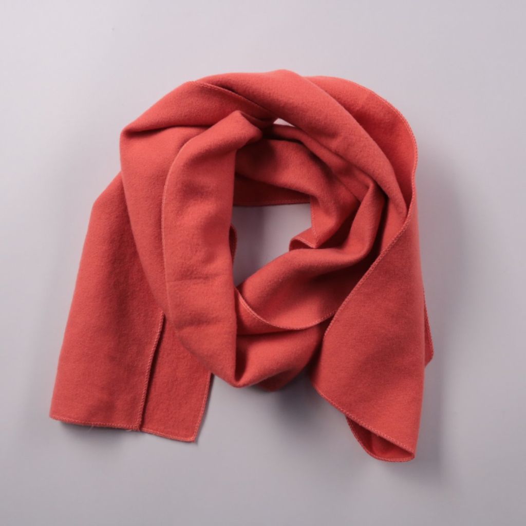 Однотонный шарф красного цвета из мягкого текстиля, без принта и декора. Подойдёт для повседневных образов в прохладную погоду и удобно драпируется или завязывается. Практичный плюс — хорошо закрывает шею и легко сочетается с верхней одеждой.