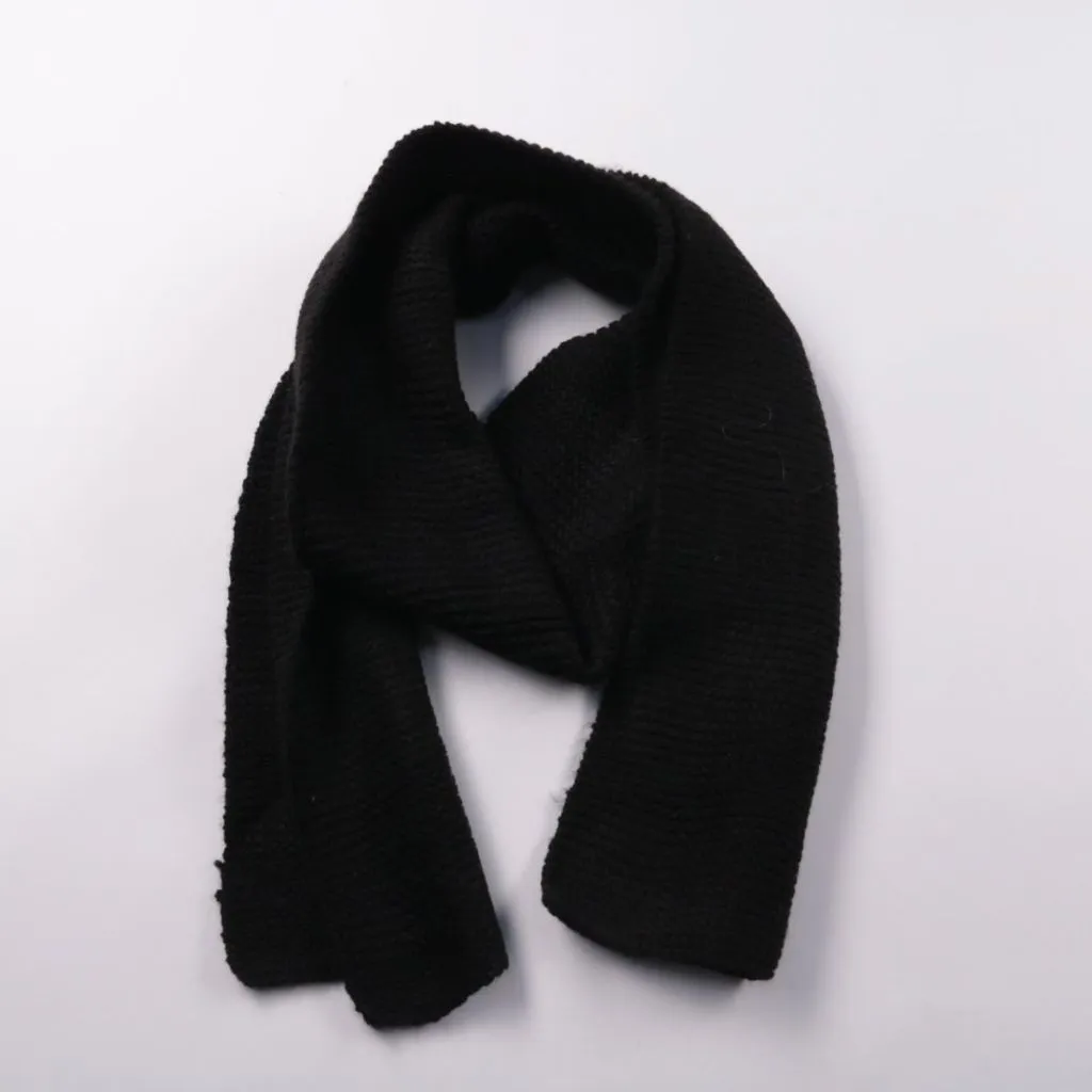 Вязаный шарф без бренда в чёрном цвете, мягкий и объёмный. Подойдёт для повседневной носки в холодную погоду и легко сочетается с любой верхней одеждой. Плотная вязка хорошо удерживает тепло и защищает шею от ветра.